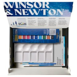 Tutto ciò che serve per dipingere con gli acquarelli e iniziare a vedere il mondo attraverso gli occhi dell’artista. La confezione comprende 10 tubetti Cotman da 5 ml nei colori terra di Siena bruciata, arancio cadmio, rosso scuro, cadmio, blu ceruleo, viola diossina, verde Hooker chiaro, nero fumo, giallo limone, rosa permanente, blu oltremare; 1 blocco per acquarello da 300 g, formato 17,8 x 25,4 cm, 20 fogli; 2 pennelli Cotman Serie 111 n° 3 e n° 5 (da viaggio); 1 tavolozza rettangolare.