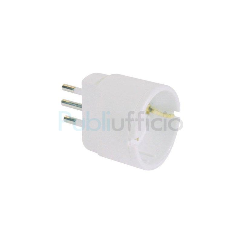 Adattatore di rete Schuko. Colore bianco. 10A. Disponibile in blister.