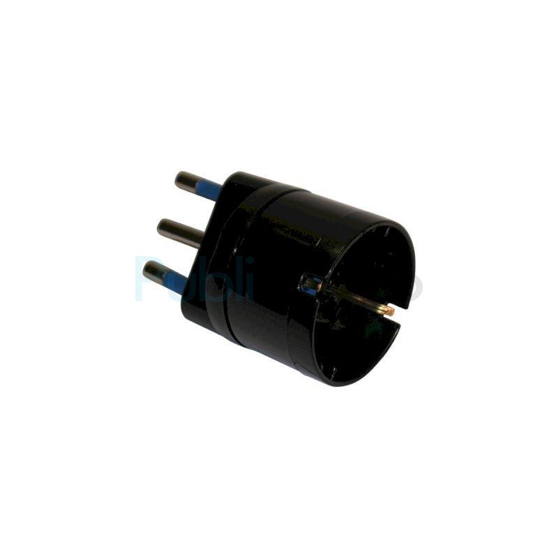 Adattatore schuko. Colore nero. 16A. Disponibile in blister.