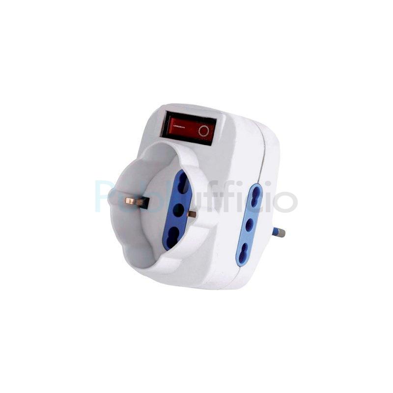 Adattatore rotante spina 16A 2 Prese 2P+T 10/16A bipasso+1 Presa bipasso/schuko MKC con interruttore