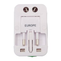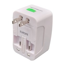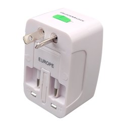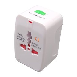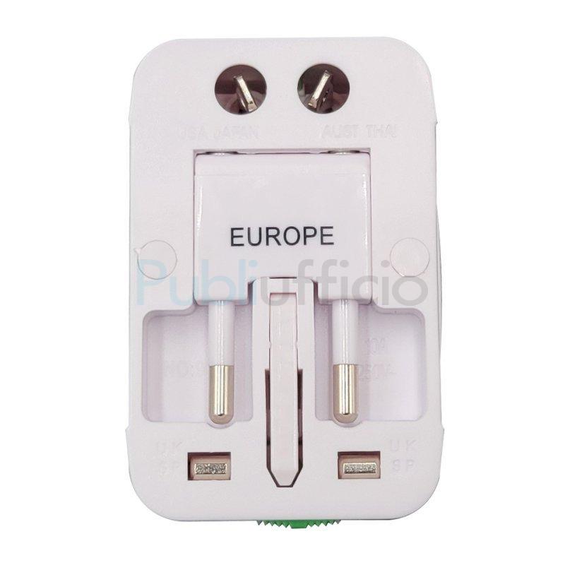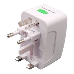 Adattatore Universale da viaggio. Compatibile con prese dei paesi: Inghilterra, Germania e USA. Ingresso AC, tensione: 85-250V. Massima corrente in uscita: 6A, potenza: 1500 W. Colore bianco . Confezione in blister.