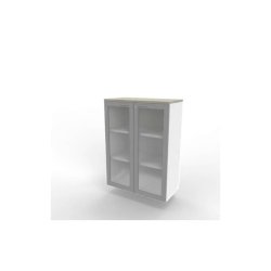 Armadio medio ante vetro telaio MDF, top cemento scocca argento 90x45xH.123,2 cm Practika Quadrifoglio - ECEM90T-CL-AA-V3