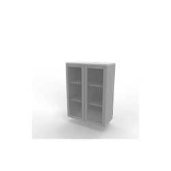Armadio medio ante vetro telaio MDF, top grigio scocca bianca 90x45xH.123,2 cm Practika Quadrifoglio - ECEM90T-GR-BA-V3