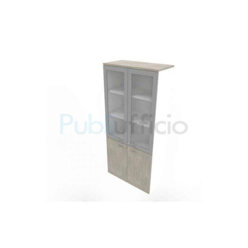 Armadio alto con ante basse cemento e alte in vetro telaio MDF scocca bianca 90x45xH.200 cm - ECE490T-CL-BA-V3