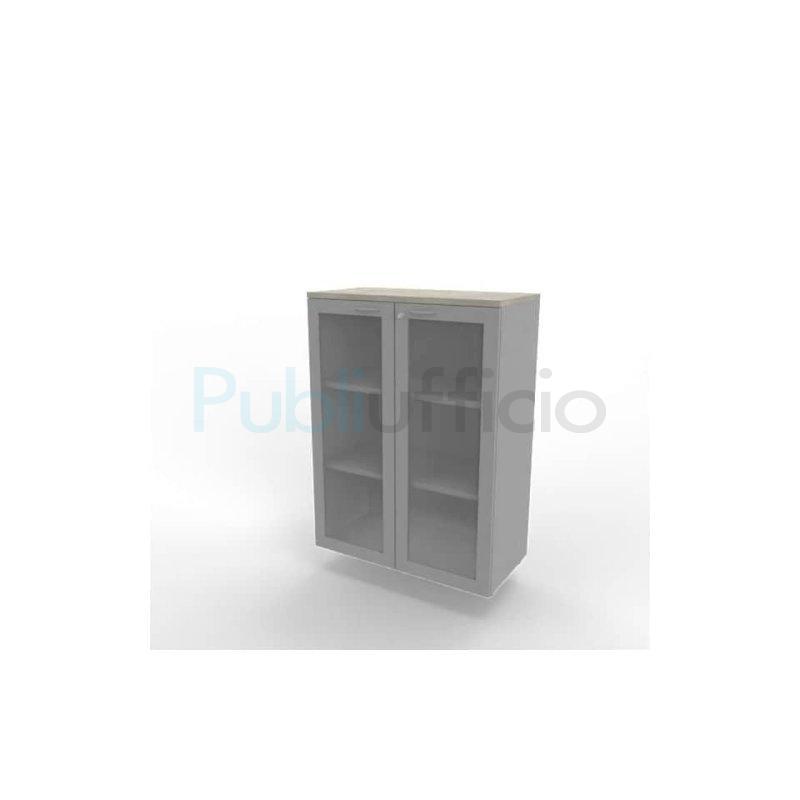 Armadio medio ante vetro telaio MDF, top cemento scocca argento 90x45xH.123,2 cm Practika Quadrifoglio - ECEM90T-CL-AA-V3