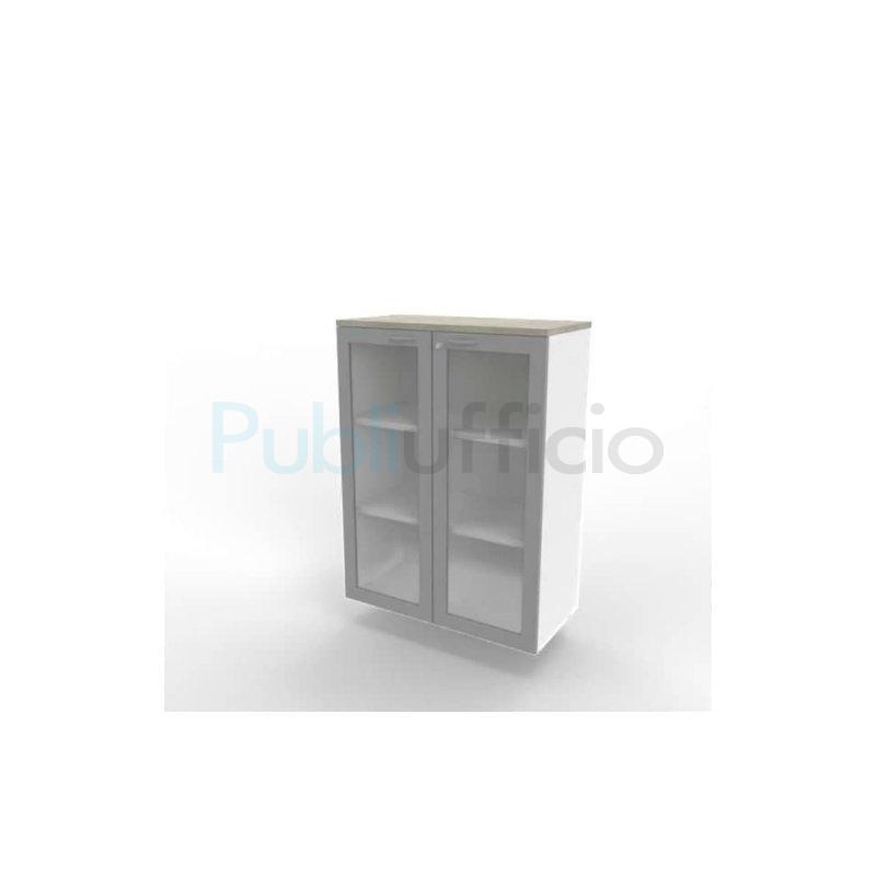 Armadio medio ante vetro telaio MDF, top cemento scocca bianca 90x45xH.123,2 cm Practika Quadrifoglio - ECEM90T-CL-BA-V3