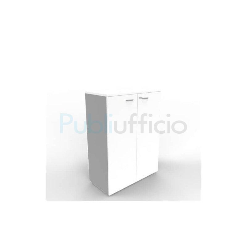 Armadio medio con ante battenti bianche scocca argento 90x45xH.123,2 cm linea Practika Quadrifoglio - ECEM90M-BA-AA-BA