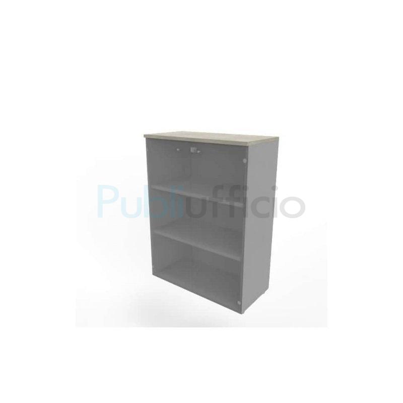 Armadio medio con ante vetro fumè, top cemento scocca argento 90x45xH.123,2 cm Practika Quadrifoglio - ECEM90V-CL-AA-GE