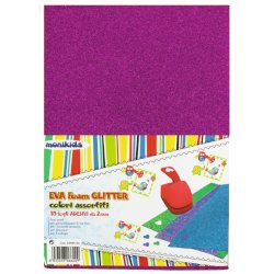 Foam in gomma Nikoffice EVA formato A4 colori assortiti glitterato adesivo - conf. 10 fogli - 23NIK133