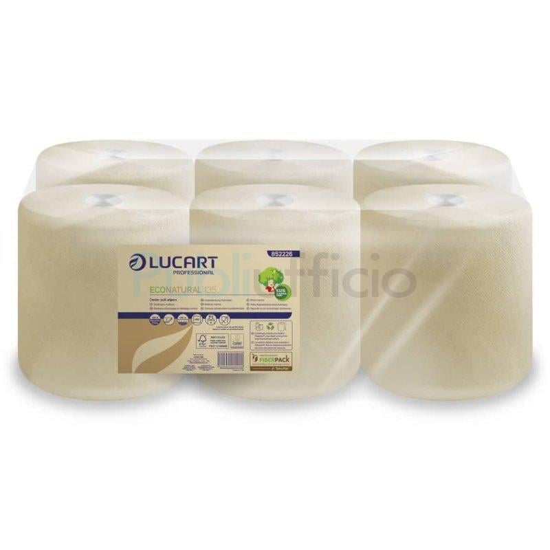 Asciugamani industriali multiuso 2 veli Lucart EcoNatural 139,8 m 2 veli avana 6 rotoli da 466 strappi - 852226T