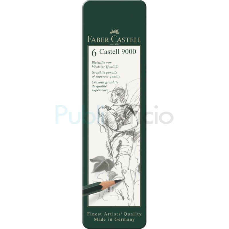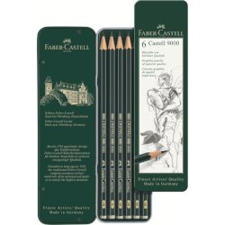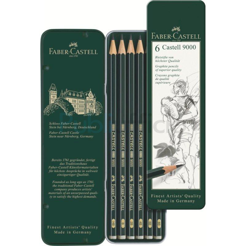 Astuccio in metallo 6 matite Faber-Castell 9000 - gradazioni assortite - 119063