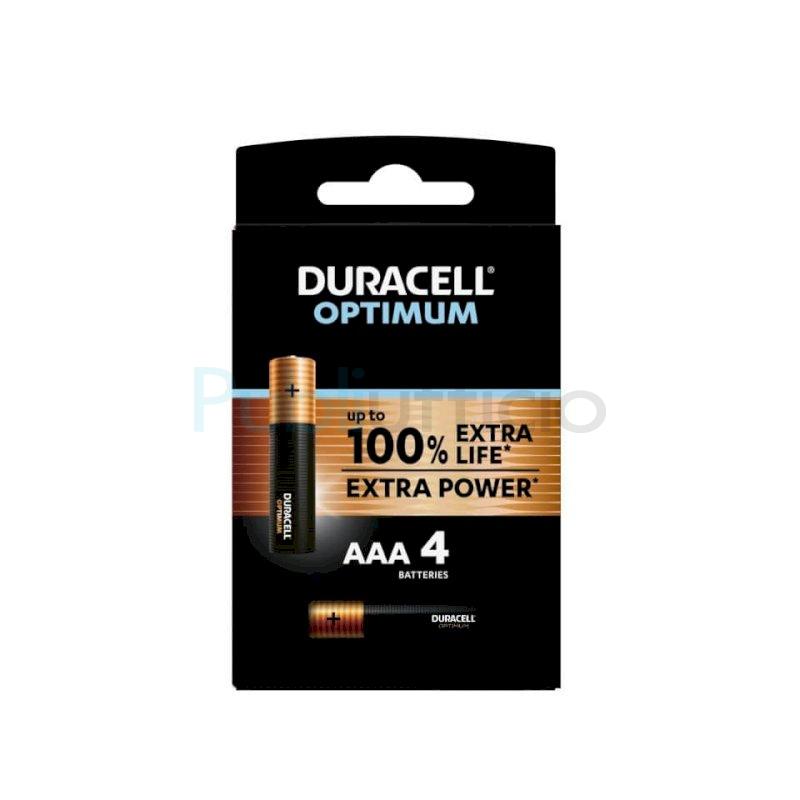 Batteria Alcalina AAA ministilo Optimum: extra durata ed extra potenza. Ciascun Blister contiene 4 batterie. Duracell Optimum dura più a lungo in alcuni dispositivi come i giocattoli. Duracell Optimum offre più potenza rispetto alle precedenti batterie alcaline Duracell per far funzionare meglio i tuoi dispositivi.