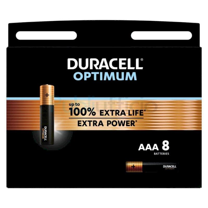 Batteria Alcalina AAA ministilo Optimum: extra durata ed extra potenza. Ciascun Blister contiene 8 batterie. Duracell Optimum dura più a lungo in alcuni dispositivi come i giocattoli. Duracell Optimum offre più potenza rispetto alle precedenti batterie alcaline Duracell per far funzionare meglio i tuoi dispositivi.