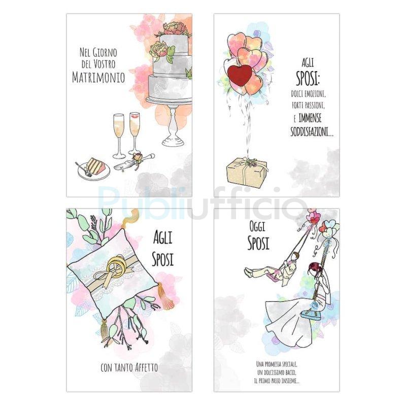 Biglietti augurali da cerimonia. Ideali per celebrare il matrimonio. Formato 12x18 cm. Fustellati oro. Confezione da 4 pezzi assortiti.