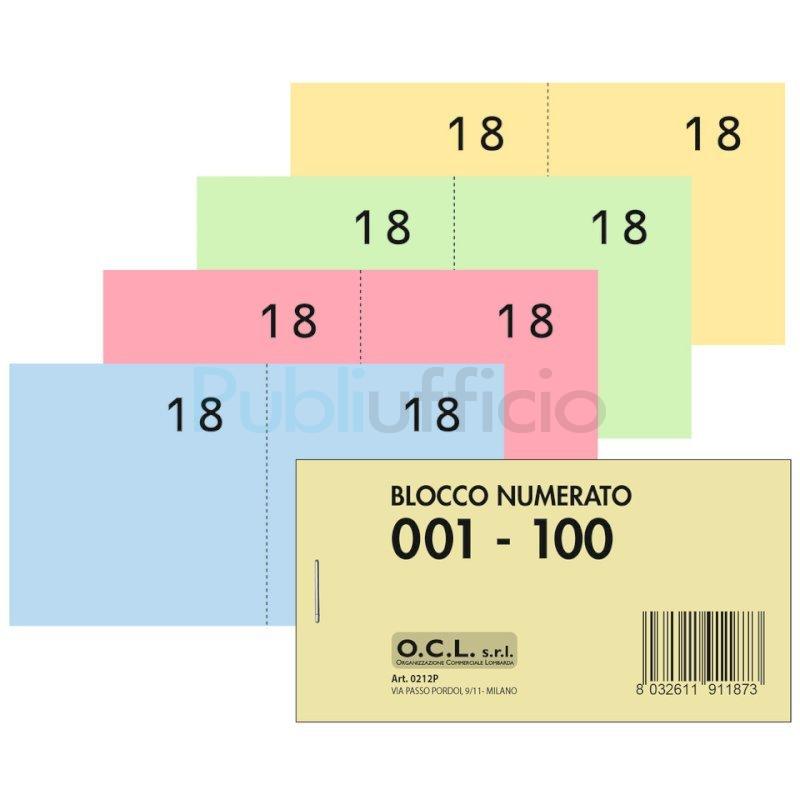 Blocchi lotteria Madre/Figlia O.C.L. - serie numerata da 1 a 100 - 4 colori assortiti - conf. 40 pz - 0212P