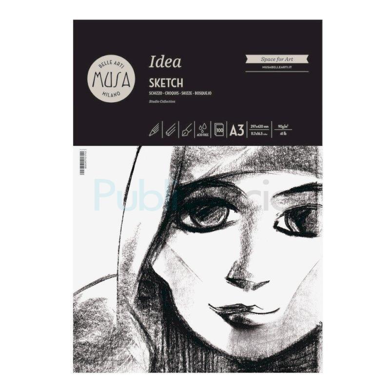 Blocco collato Belle Arti Musa Idea Sketch - 90 g - A3 100 fogli - MU123693