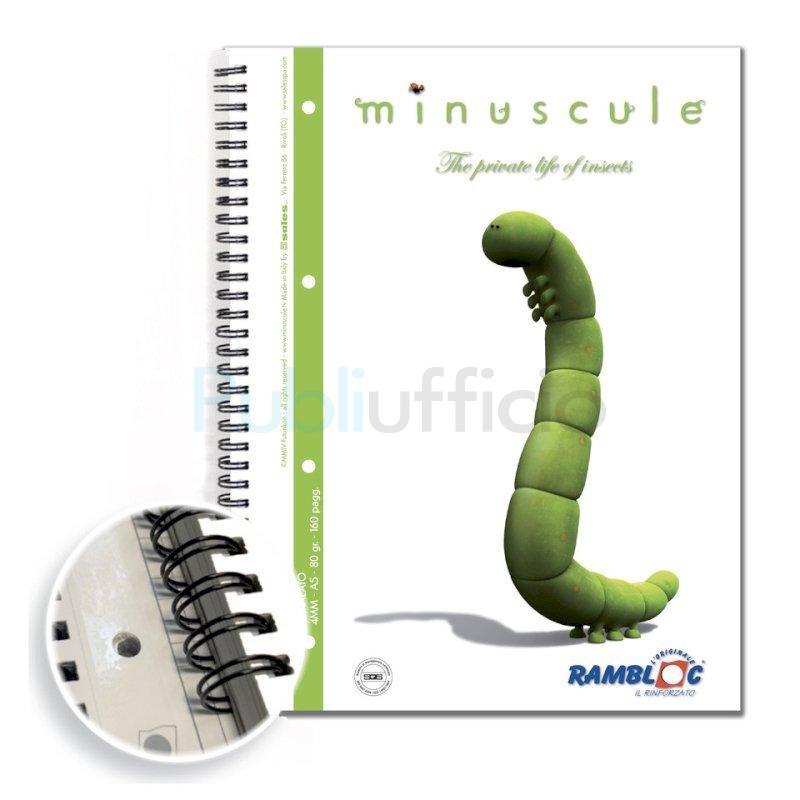 Blocco Spiralato rinforzato Minuscule. 160 pagine. Formato A5. 80 g. Rigatura 4 mm.