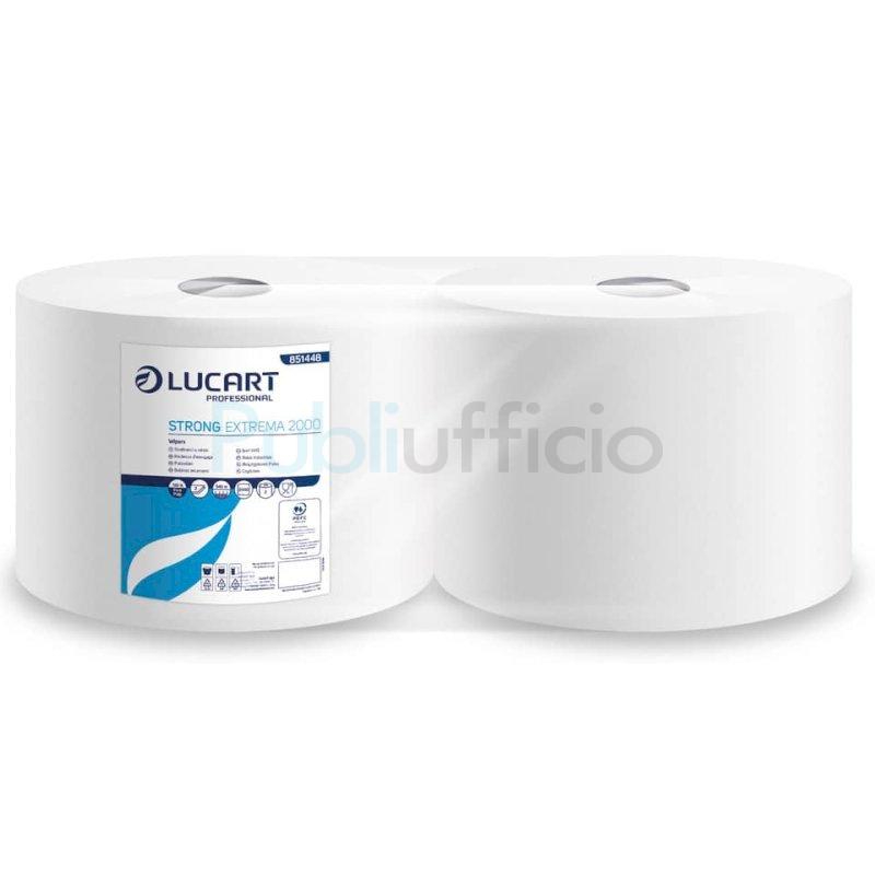 Bobina strofinacci industriali 2 veli pura cellulosa STRONG EXTREMA 2000 2 Lucart 2000 strappi - conf. 2 rotoli