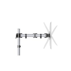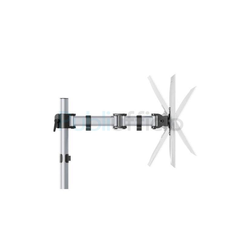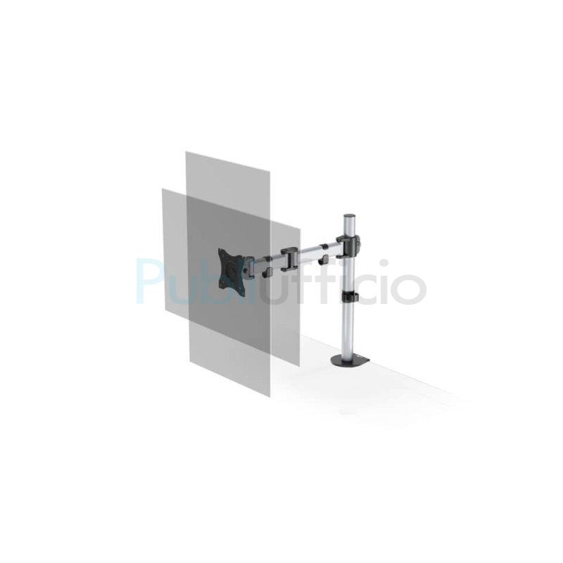Braccio porta monitor per 1 monitor con doppia opzione di montaggio, con morsetto o perno per foro passacavo. Il monitor può essere regolato individualmente in altezza, inclinazione e orientamento per agevolare il lavoro ergonomico. Il monitor può essere ruotato di 360° per poterlo utilizzare sia in orizzontale che in verticale. Il braccio può essere esteso fino a 43 cm grazie ai tre giunti e orientato fino a 180°. L'altezza dei monitor può essere regolata lungo la colonna da 45 cm. Con montaggio universale VESA (75x75 mm o 100x100 mm). Per monitor standard fino a 27'' e con peso massimo fino a 8 kg. Gestione dei cavi: i cavi del monitor sono guidati lungo il supporto da clip ferma cavo che ne evitano il danneggiamento. Dimensioni esterne: 429x448x100mm. Colore: argento.