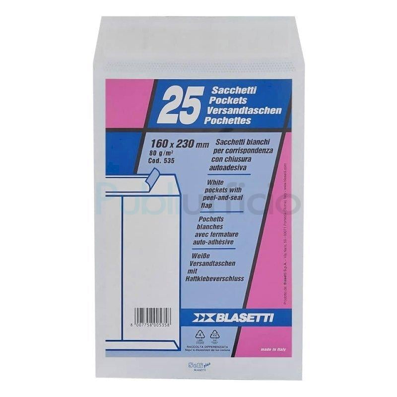 Busta a sacco Blasetti Self bianco - 80 g/m² - in conf. 25 buste - 160x230 mm 535