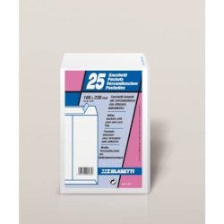 Busta a sacco Blasetti in carta da 80 g/m². Colore: bianco. Formato: 160 x 230 mm. Confezione da 25 buste.