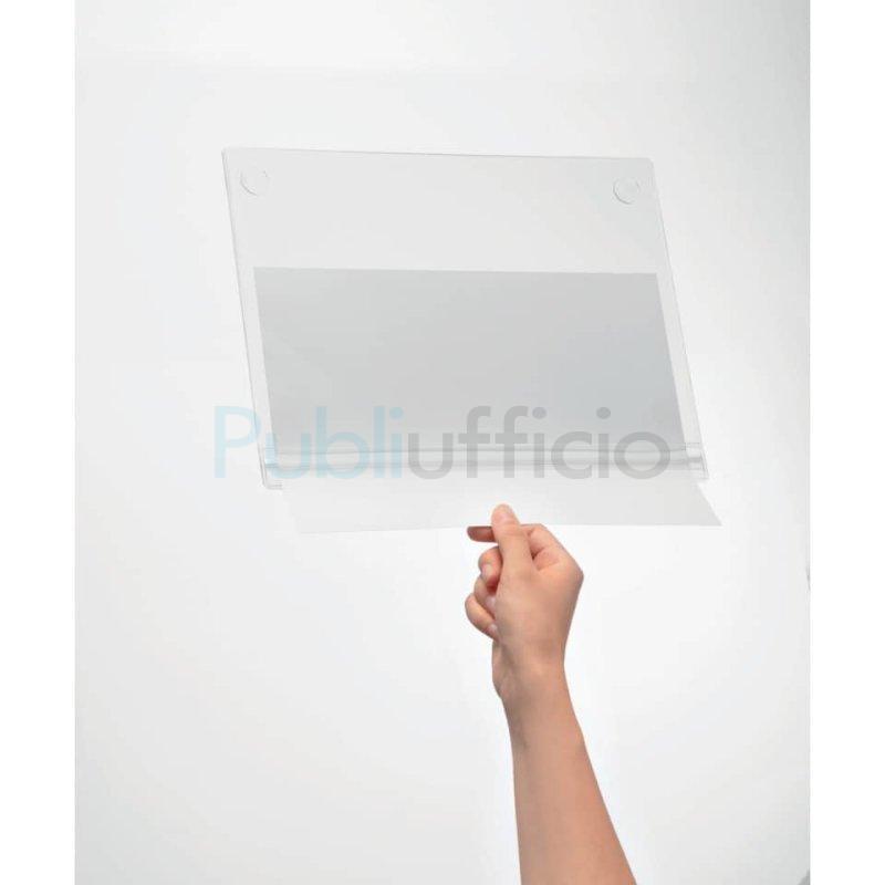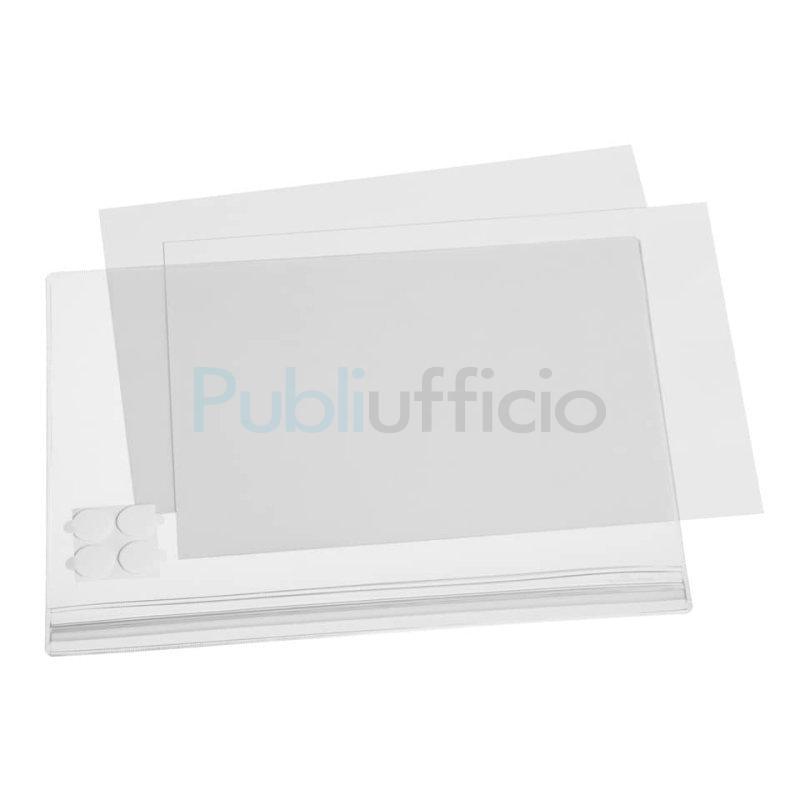Buste porta documenti ideali per esporre informazioni all’aperto o in aree interne umide come vivai, saune, piscine, dove gli avvisi vengono a contatto con gli spruzzi d’acqua. Ottima protezione degli inserti grazie alla chiusura a pressione impermeabile, soprattutto in caso di pioggia, elevata umidità e sporco. Fissaggio tramite quattro punti biadesivi trasparenti (inclusi nella confezione) che possono essere rimossi senza lasciare residui. Testate secondo lo standard IPX5 (protezione contro i getti d'acqua provenienti da tutte le direzioni). Pellicola trasparente, con stabilizzatore UV e resistente alle intemperie, antigraffio con effetto antiriflesso. Utilizzabile sia in formato verticale che orizzontale. Sostituzione degli inserti facile e veloce. Capacità: 2 fogli da 160 g/m², inclusi nella confezione. Un'ampia gamma di modelli per gli inserti sono disponibili su www.duraprint.it. Adatto anche a formati Lettera. Dimensioni esterne: 247 x 325 x 0,6mm. Dimensioni esterne cornice: 247 x 325 mm. Trasparente. Fissaggio adesivo. Uso interno ed esterno. Confezione composta da 5 pezzi.