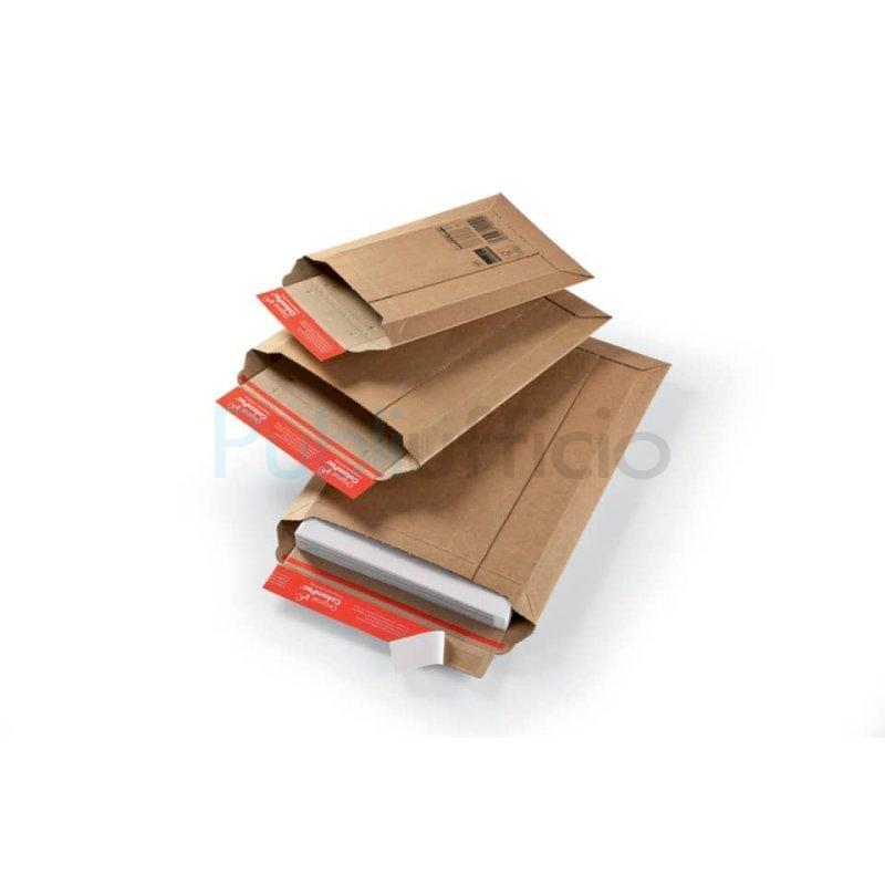 Busta in cartone per spedire in sicurezza libri, cataloghi ecc., chiusura autoadesiva. Protezione resistente degli angoli. Sistema di apertura facilitata, non servono forbici, è sufficiente strappare la linguetta rossa. Altezza variabile e flessibile per adattarsi al contenuto. Cartone con sistema antitaglio. Misura esterna: 303 × 413 cm.