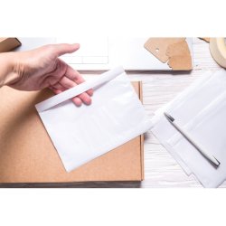 Buste autoadesive porta documenti Docustick C5. Formato interno 228 x 165 mm. Formato esterno: 240 x 175 mm. Peso: 4,9 grammi. Ideali per contenere documenti di spedizione durante il trasporto. Realizzate in due materiali accoppiati e termosaldati: polipropilene e carta kraft di colore bianco. Disponibili in confezione composta da 250 buste.