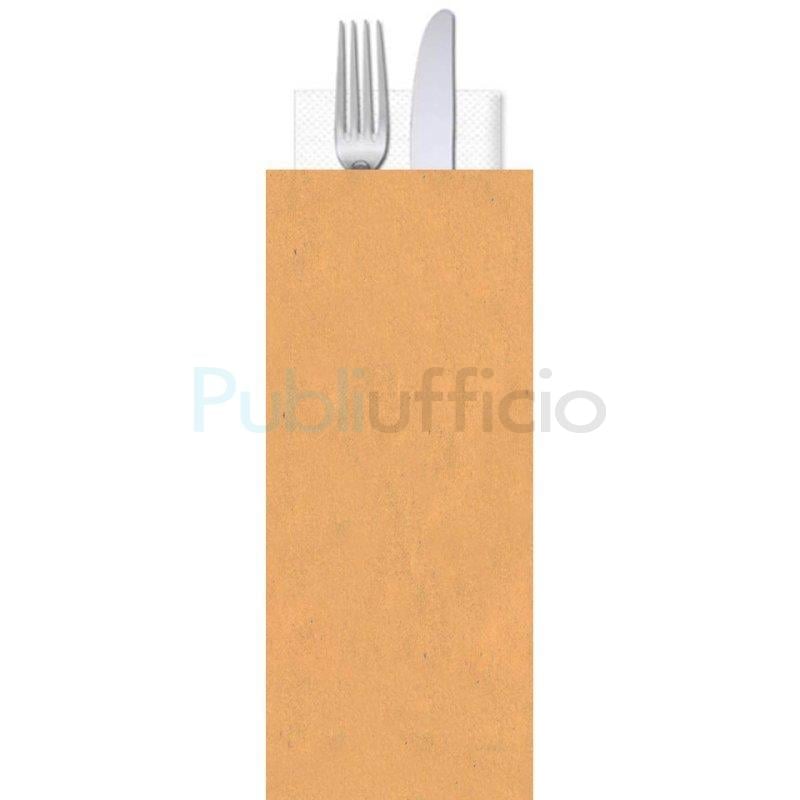 Buste porta posate in carta paglia neutra politenata Le Nappage con tovagliolo 2 veli conf. 500 pz 11x25 cm