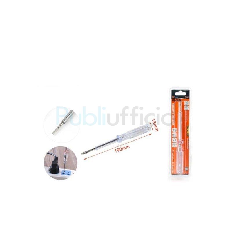 Cacciavite cercafase con punta piatta per tutte le esigenze di sicurezza elettrica ed elettronica. Dimensioni: 19 cm.