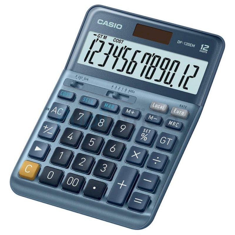Calcolatrice da tavolo Casio DF-120EM-W-EP - blu - solare e batteria display 12 cifre