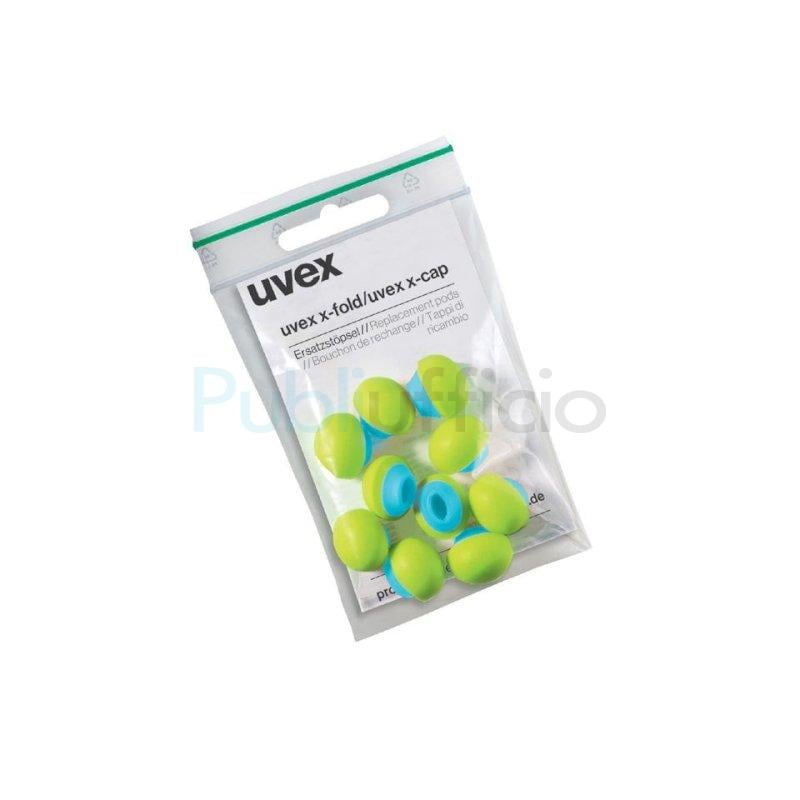 Capsule di ricambio per archetto x-cap - Uvex - conf. 60 paia in bustine da 5 paia lime/blu - 2125351