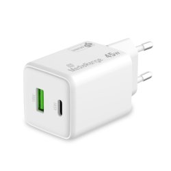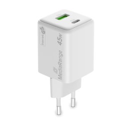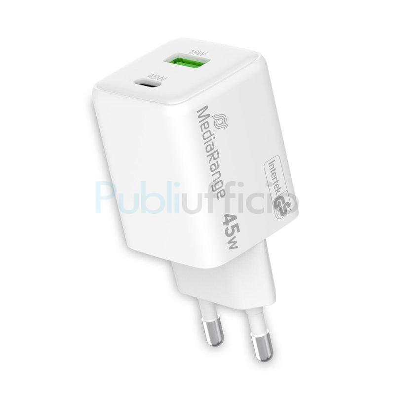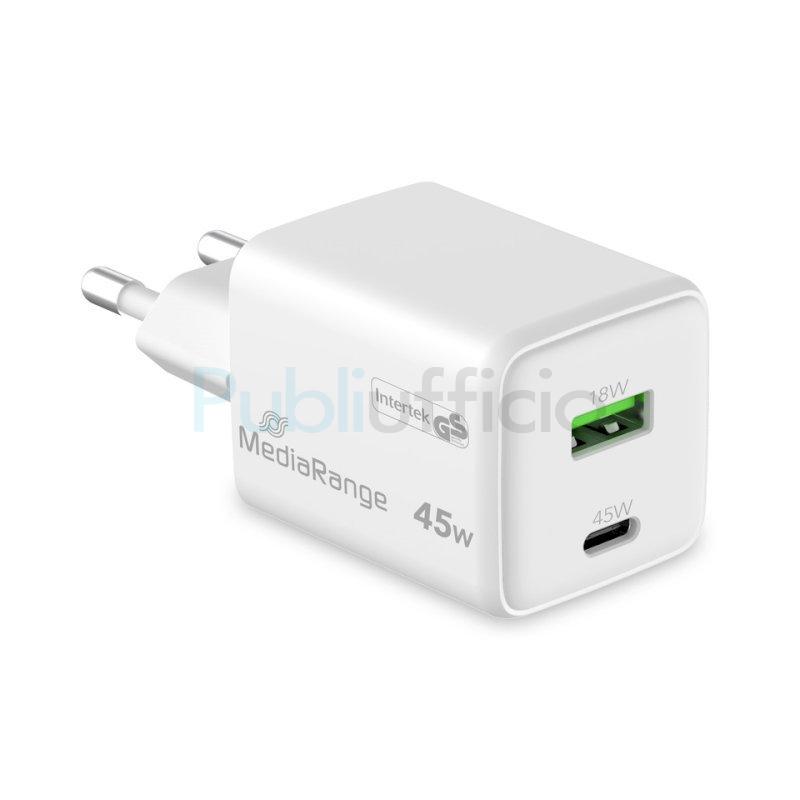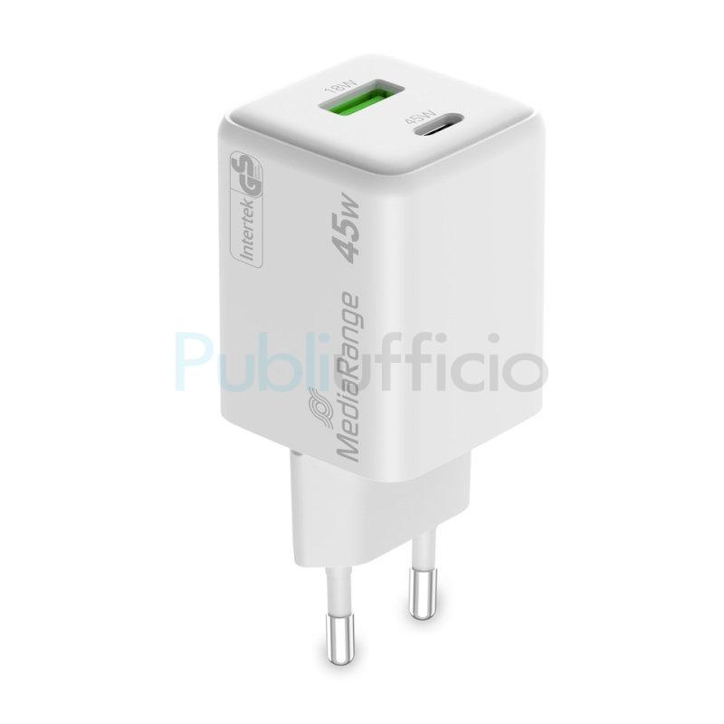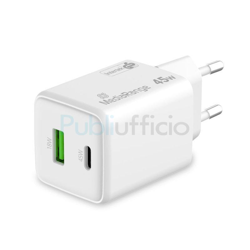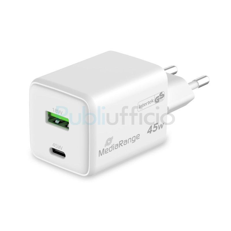 Caricabatterie rapido GaN 43W con uscita USB-A e USB-C Media Range bianco MRMA113-2