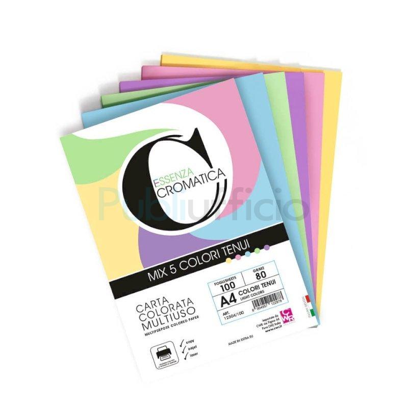 Carta colorata Deco Cromatica colori tenui formato A4 - 5 colori assortiti in 100 ff - 160 gr - 12304/100
