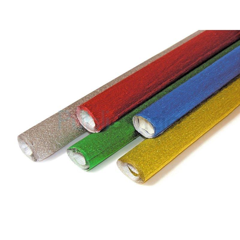 Carta crespa metallizzata ideale per decorazioni. Dimensioni: 50 x 150 cm. Grammatura: 51 g/m². Colore argento.