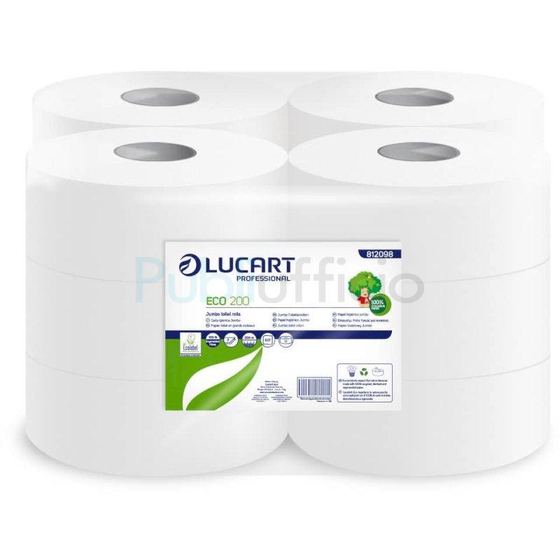 Carta igienica Lucart Eco 200 m mini jumbo 2 veli 12 rotoli da 527 strappi - 812098U