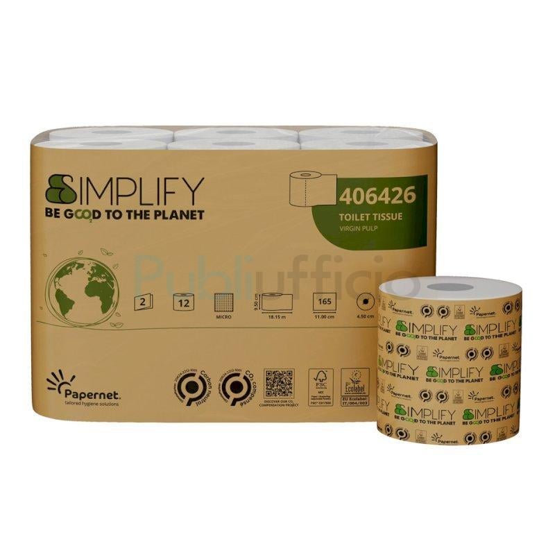 Carta igienica Papernet Simplify in pura cellulosa 2 veli conf. 12 pz bianco 406426