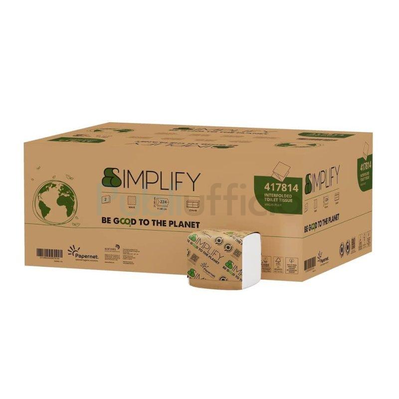 Carta igienica Papernet Simplify interfogliata in pura cellulosa 2 veli conf. 40 pz da 224 fogli bianco - 417814