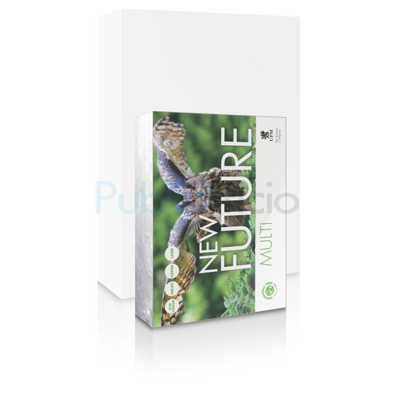 Carta per fotocopie New Future. Formato A5 e grammatura 80 grammi. Punto di bianco (ISO 536) 164 g/m2, opacità (ISO 2471) 64,5. Risma da 500 fogli.