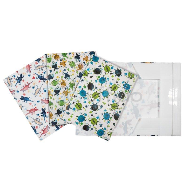 Cartella a 3 lembi Icon Sea con elastico tondo, formato A4 (33 x 23,7 cm). Tre soggetti assortiti.