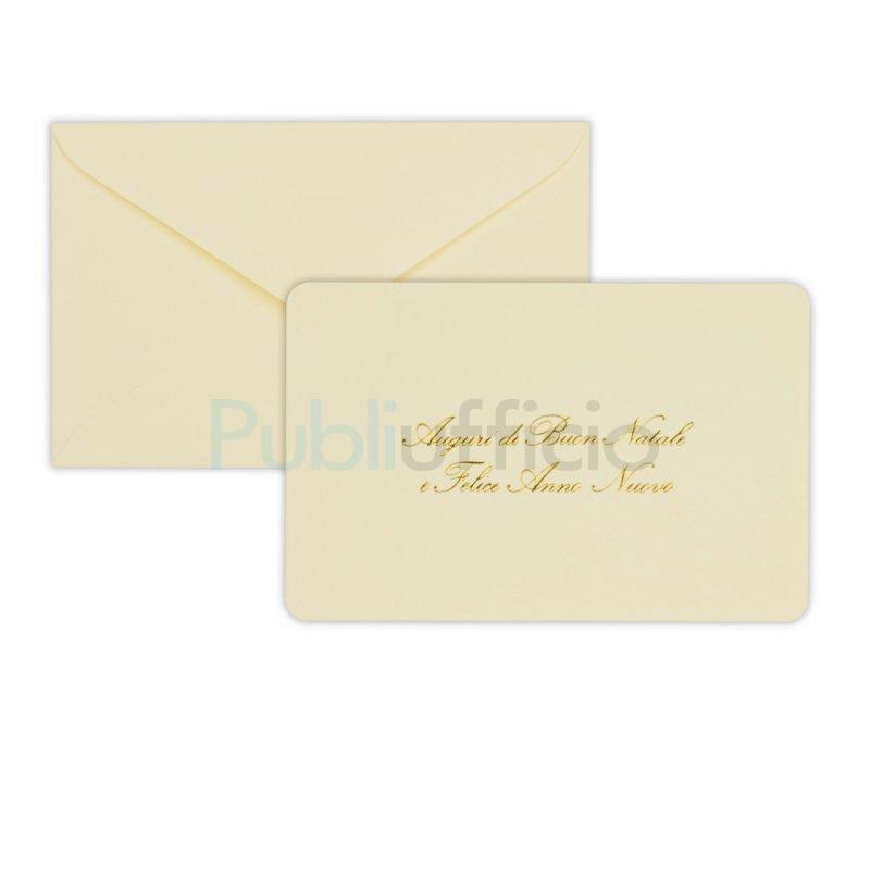 Cartoncini auguri Natalizi rossi con scritta augurale in oro, busta in tinta. Stampa oro a caldo. Confezione da 100 pezzi.