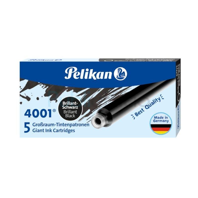 Cartucce 4001 per stilografiche versione GTP/5, che corrisponde a 2 cartucce TP/6. Inchiostro di ottima qualità in tanti colori brillanti. Nella versione blu royal, il tratto è cancellabile con i cancellatori d’inchiostro Pelikan e si toglie dai tessuti con acqua e sapone. Espositore composto da 10 astucci da 5 pezzi ciascuno di colore nero.