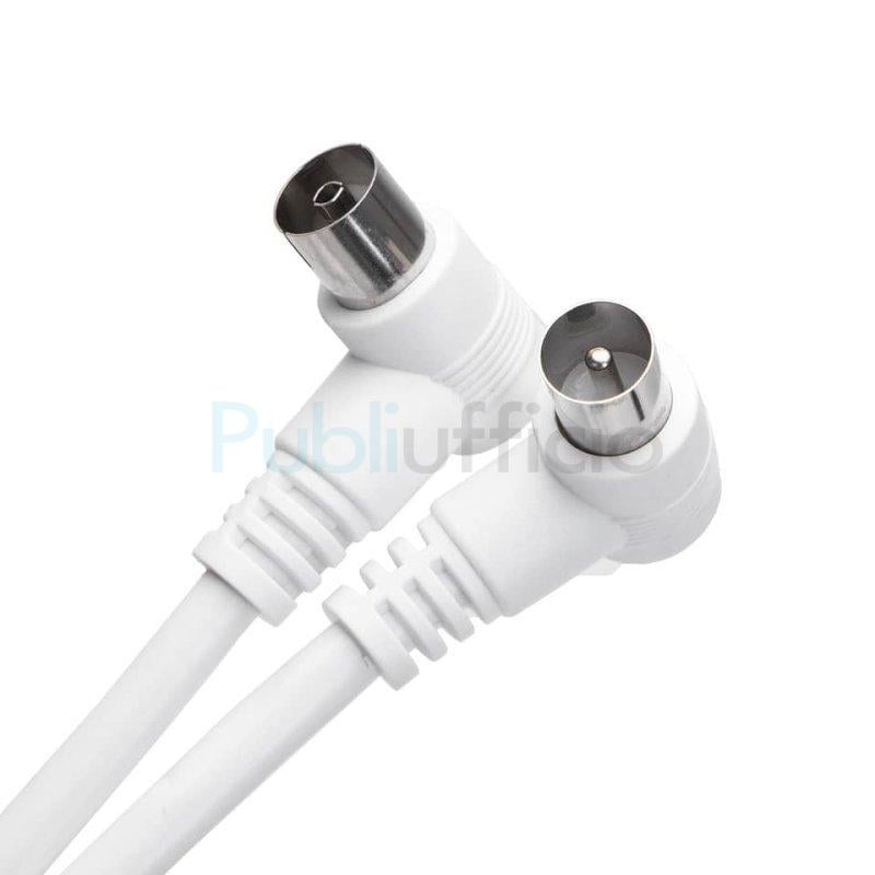 Cavo antenna TV 5m bianco. Trasmissione ad alta definizione, stabilità duratura. Spina ad angolo retto. Bassa eccentricità. Pacchetto di schermatura in foglio di alluminio. Guaina in PVC di alta qualità. Materiale: PVC, CCS e rame.