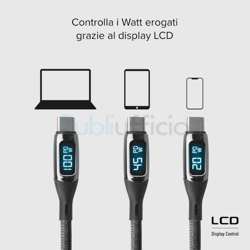 Cavo SBS Type C con display di controllo LCD - lunghezza 1 m - nero TECABLETCCLED100WK