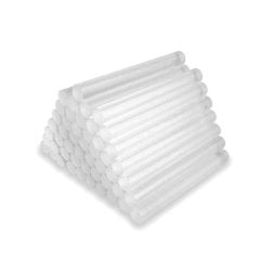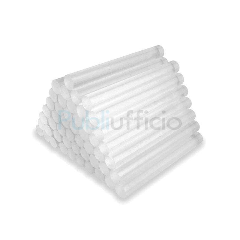 Pack risparmio da 1 Kg di colla a caldo in Stick per pistole termocollanti. Formato: Ø 11 mm x 20 cm. Ideale per l'utilizzo su qualsiasi tipo di materiale, quali: ceramica, vetro, legno, plastica e tessuti. Confezione composta da 50 ricariche.