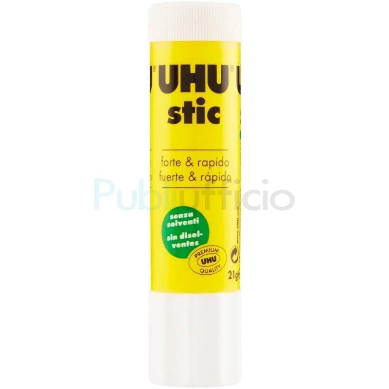 La colla stick UHU stic è il classico bastoncino di colla che da generazioni ci accompagna a scuola, dalle elementari fino all'università, e in molti casi anche in ufficio. Stick di colla a base acqua in formato solido, incolla carta, cartoncino, carta velina, cartone, fotografie, etichette, polistirolo espanso e tessuti. Caratteristiche: priva di solventi garantisce massima sicurezza e libertà di utilizzo anche per i bambini, non sporca, si lava con acqua, senza solventi, sicura e facile da usare anche per i bambini in autonomia. Tappo a vite per prevenire l'essiccazione del prodotto. Che dobbiate incollare un disegno sul quadernone di scuola, realizzare un collage, incollare le foto sull'album delle vacanze o un grafico per la presentazione in ufficio... c'è e ci sarà sempre la colla stick UHU stic! Contenuto: 21 gr.