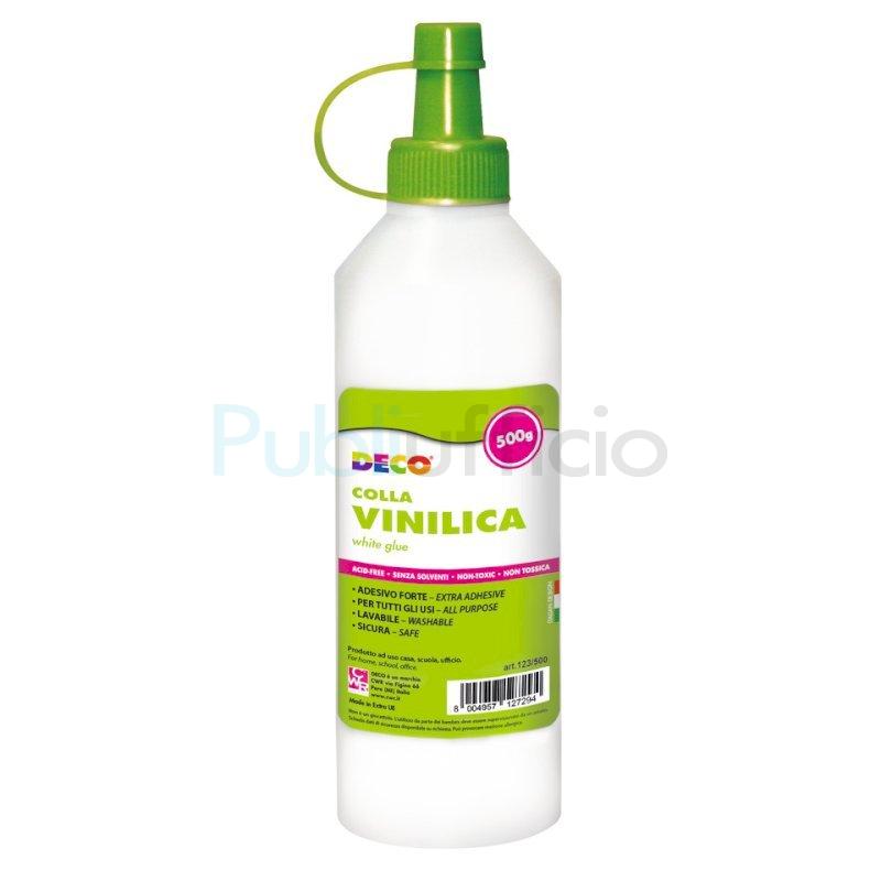 Flacone di colla vinilica atossica, senza solventi e lavabile. Asciuga rapidamente. Aderisce su vari materiali, tra cui: carta, cartoncino, legno, tessuti, sughero, cuoio. Ideale per lavori di hobbistica. Formato da 500 g.
