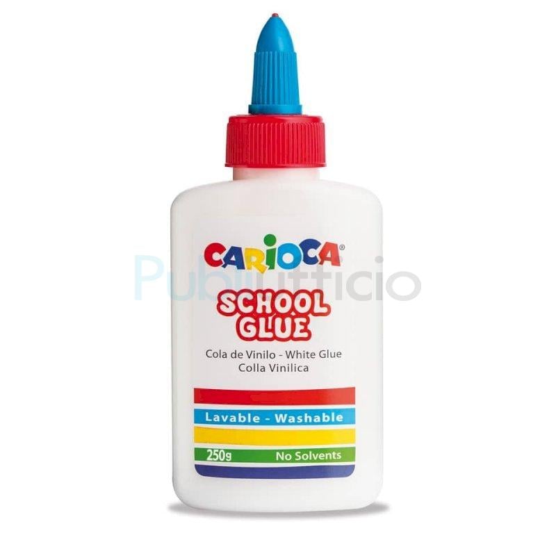Colla Vinilica School Glue, flaconcino con cappuccio ed erogatore a punta per un'applicazione precisa. Adatta per superfici di carta e cartone. Una volta asciutta diventa trasparente. La colla non contiene solventi. Formato 250 g.