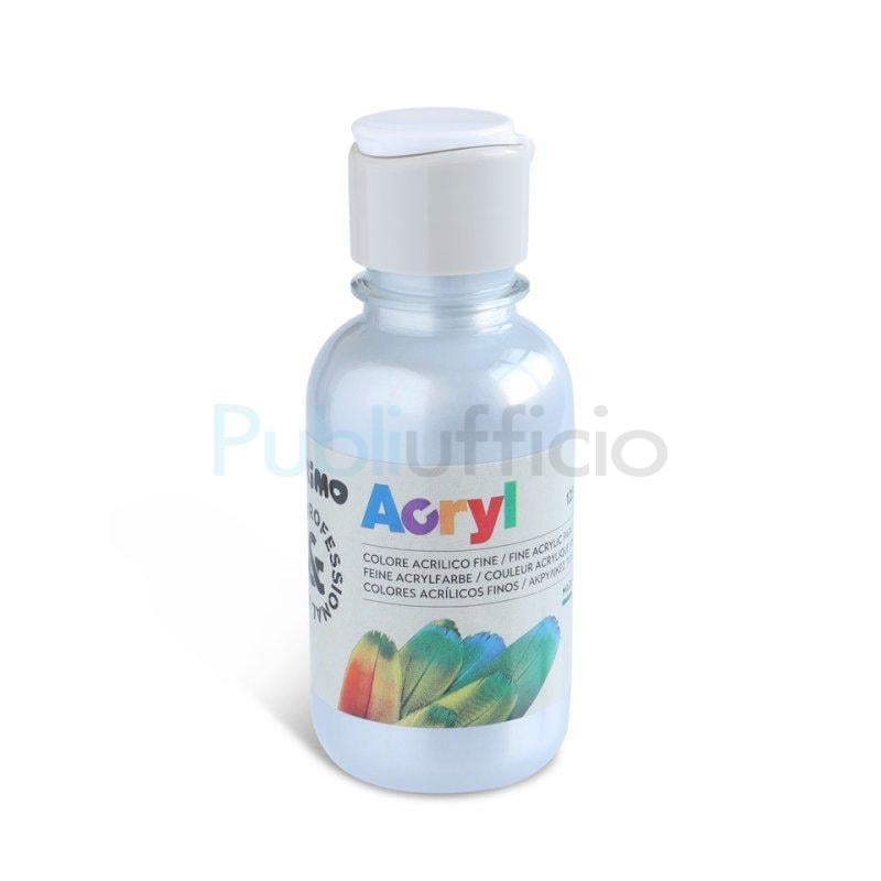 Colore acrilico fine in bottiglia in PET da 125 ml, con tappo dosatore. È un colore ad acqua ad alta concentrazione di pigmento ed emulsione acrilica, di alta qualità, opaco e molto coprente che una volta asciutto è permanente. Si stende facilmente e asciuga in bella superficie rimanendo elastico, di tono vivo e luminoso, piacevole al tatto e resistente. È utilizzabile su qualsiasi substrato, si presta bene alle attività pittoriche proprie di questa tecnica versatile e ricca di possibilità creative. È adatto a tecniche decorative e hobbistiche quali il découpage. È applicabile sulle pareti mediante stencils. I risultati sono di ottimo effetto e durata. Le tinte disponibili in gamma utilizzate pure offrono colori intensi e d’effetto. Colore argento.
