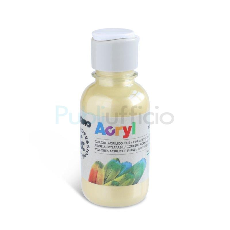 Colore acrilico fine in bottiglia in PET da 125 ml, con tappo dosatore. È un colore ad acqua ad alta concentrazione di pigmento ed emulsione acrilica, di alta qualità, opaco e molto coprente che una volta asciutto è permanente. Si stende facilmente e asciuga in bella superficie rimanendo elastico, di tono vivo e luminoso, piacevole al tatto e resistente. È utilizzabile su qualsiasi substrato, si presta bene alle attività pittoriche proprie di questa tecnica versatile e ricca di possibilità creative. È adatto a tecniche decorative e hobbistiche quali il découpage. È applicabile sulle pareti mediante stencils. I risultati sono di ottimo effetto e durata. Le tinte disponibili in gamma utilizzate pure offrono colori intensi e d’effetto. Colore oro.